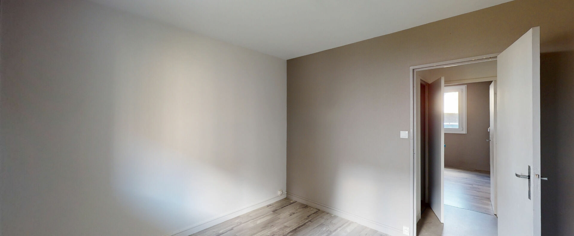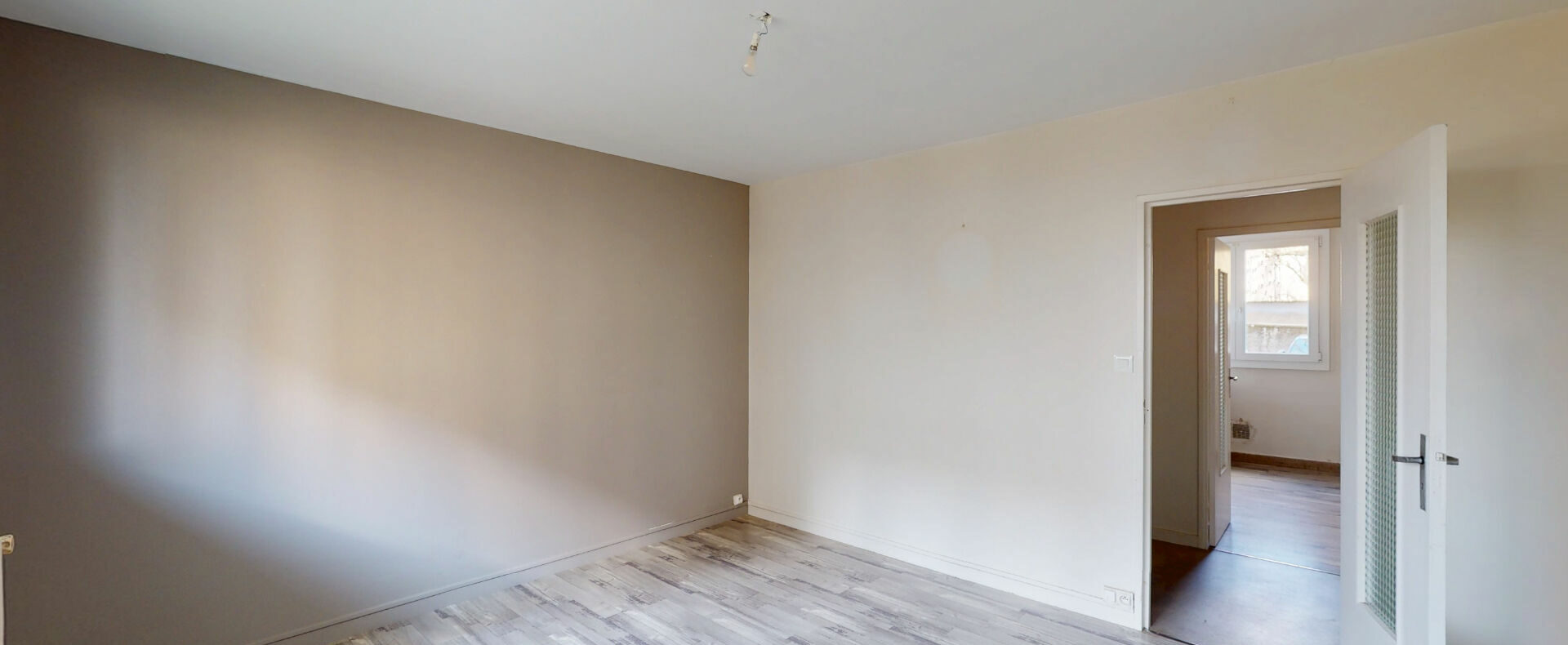 L’agencement, optimisé pour offrir une circulation fluide, s’articule autour d’une entrée desservant les différents espaces de vie. La pièce principale, lumineuse, profite de finitions contemporaines et d’un sol imitation parquet qui apporte une atmosphère chaleureuse à l’ensemble.