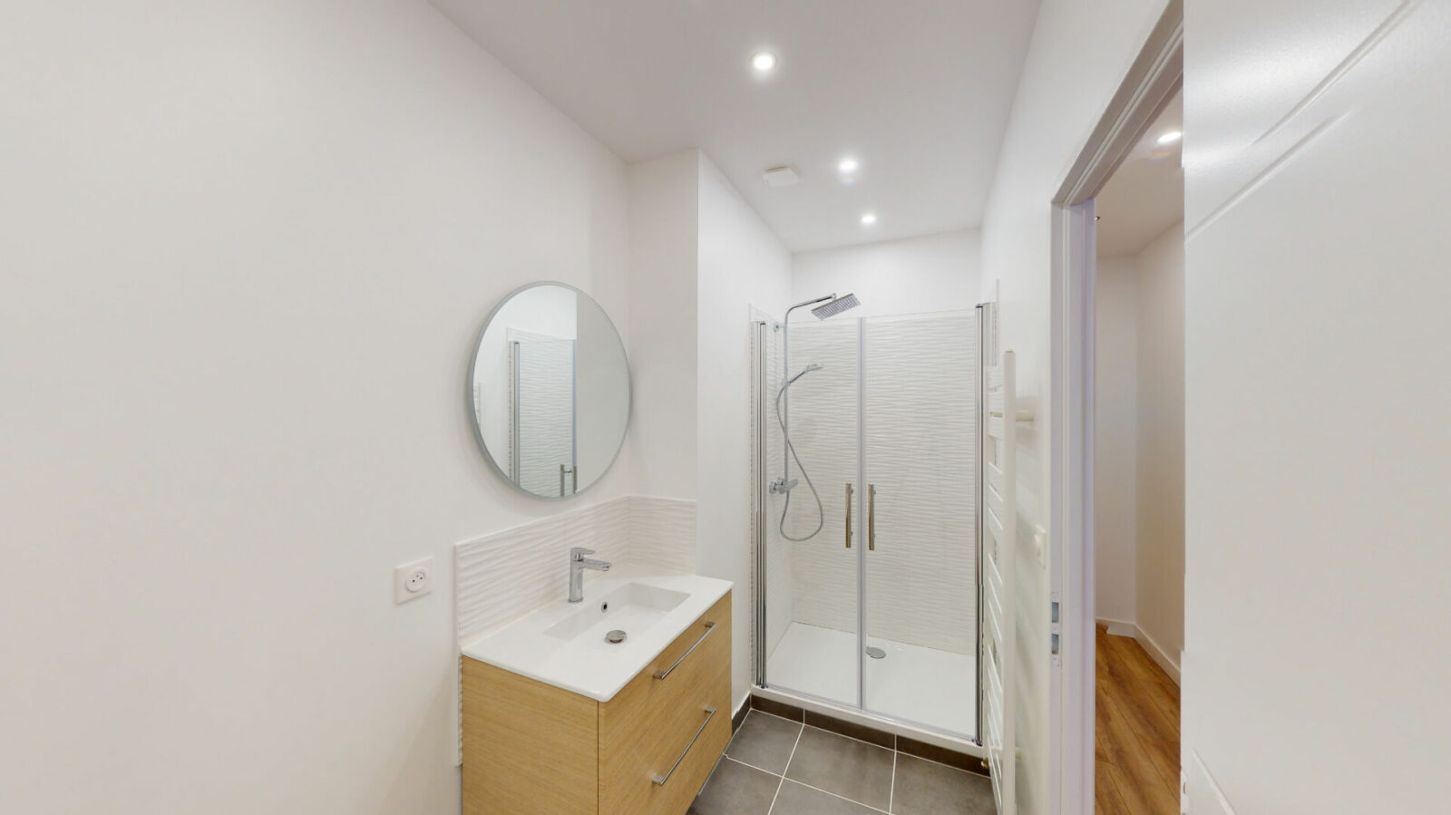 Vous accédez à une vaste pièce de vie de 31 m2 avec une cuisine entièrement équipée ouverte sur un grand espace de vie ensoleillé, de deux chambres indépendantes, d’une salle d’eau aménagée et d’un toilette indépendant.