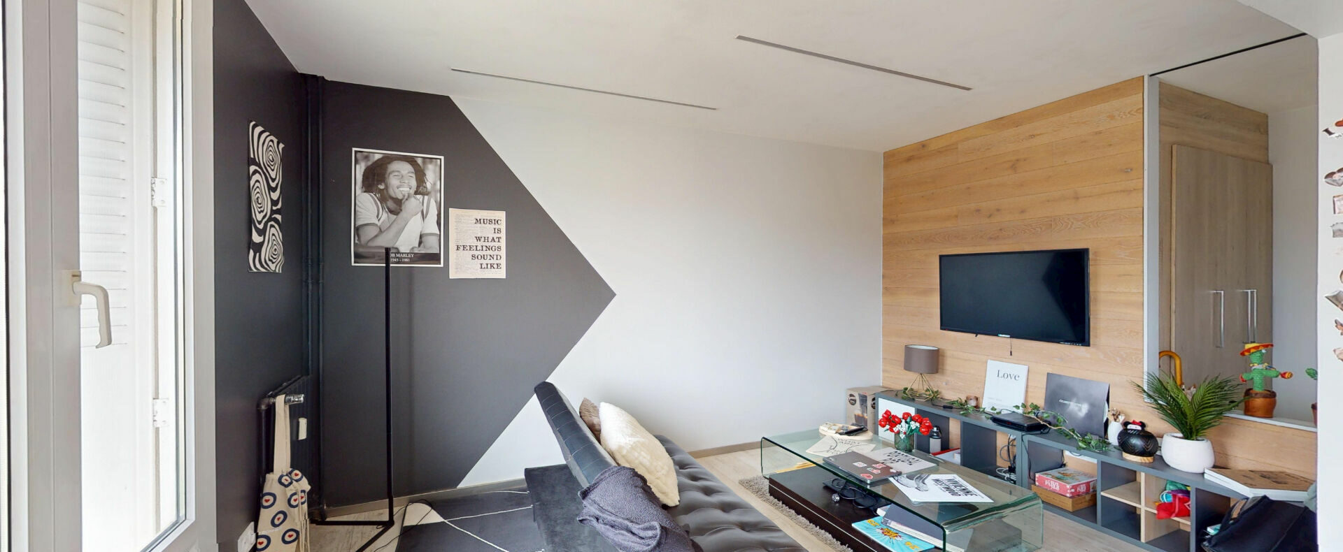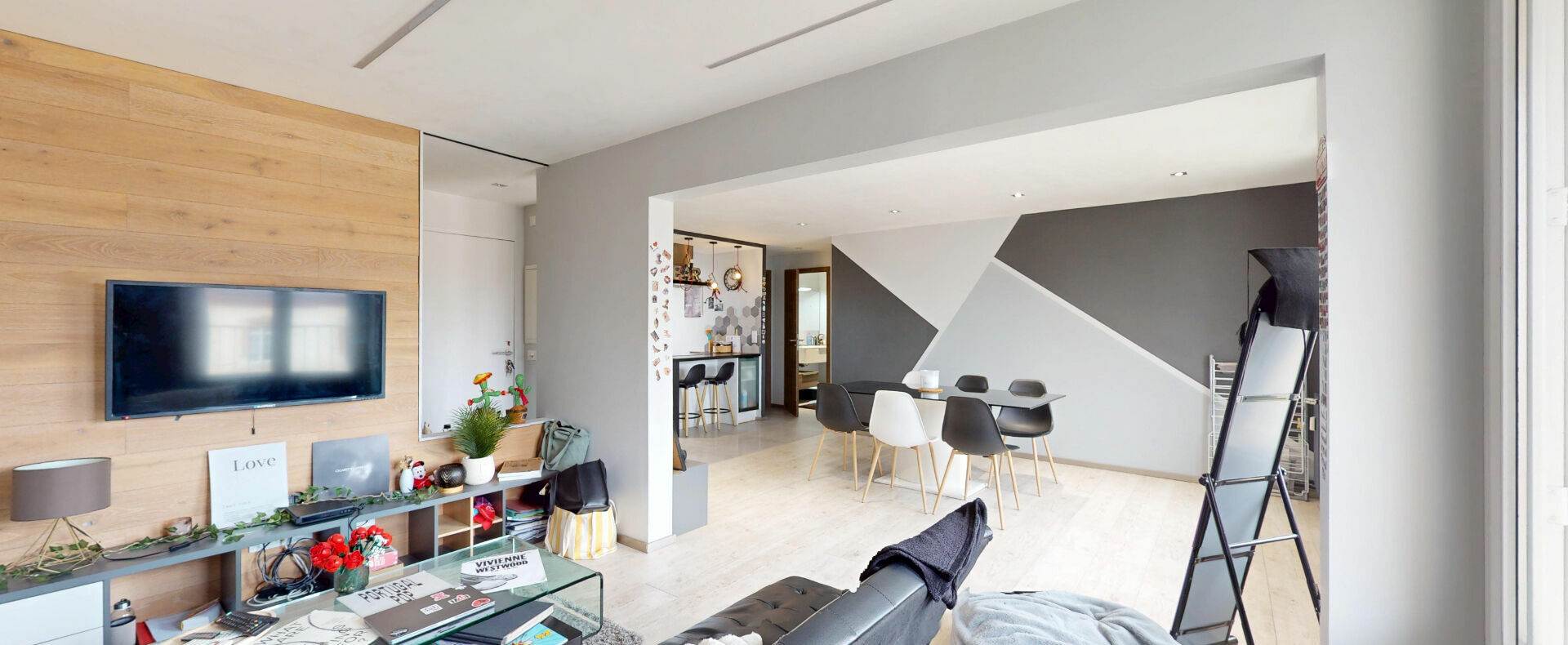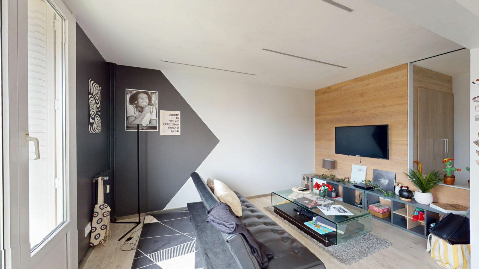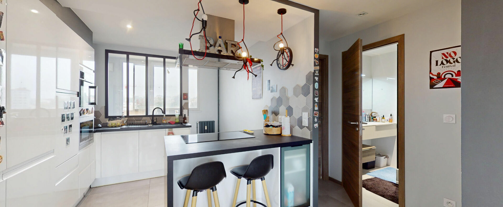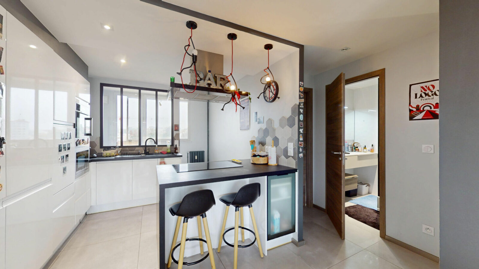 En très bon état, il se compose d’une entrée, d’un vaste salon séjour lumineux donnant accès à un grand balcon avec vue dégagée, ainsi que d’une cuisine moderne entièrement équipée, ouverte sur l’espace de vie et bénéficiant d’un accès à une loggia.