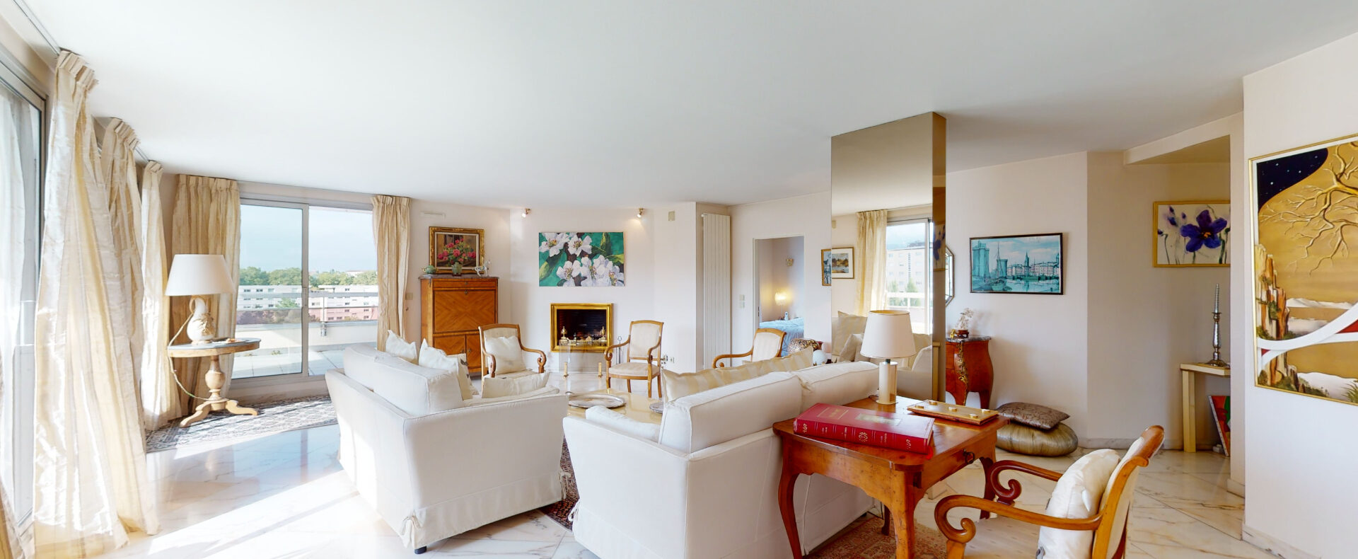 Vous accédez dans l’appartement par un ascenseur privatif qui dessert une entrée ayant un accès sur un immense salon séjour de 75 m2 jouissant de plusieurs expositions avec 5 portes fenêtres donnant toutes sur la terrasse avec en plus une vue très agréable sur notre ville; vous disposez également d’une vaste cuisine équipée, de 2 belles chambres ayant chacune leurs salle de bain privative et leurs toilettes, d’une pièce supplémentaire pouvant être utilisée soit en 3 ème chambre où soit en bureau, à votre convenance.