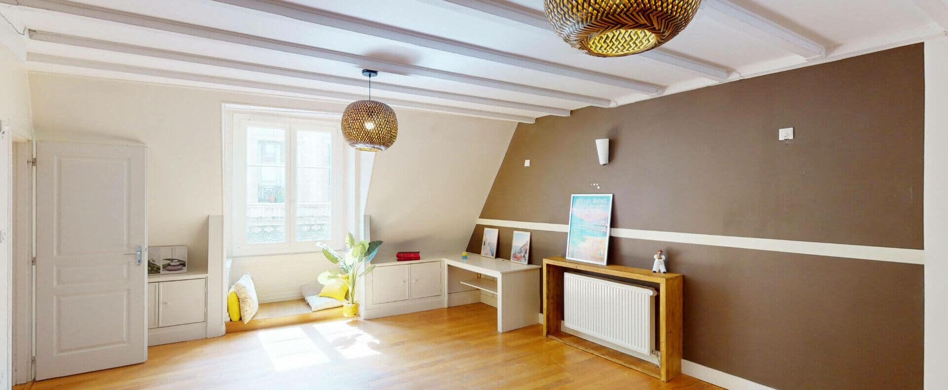 D’une surface habitable de 90 m² (120 m² au sol), cet appartement allie cachet, fonctionnalité et volumes généreux.
