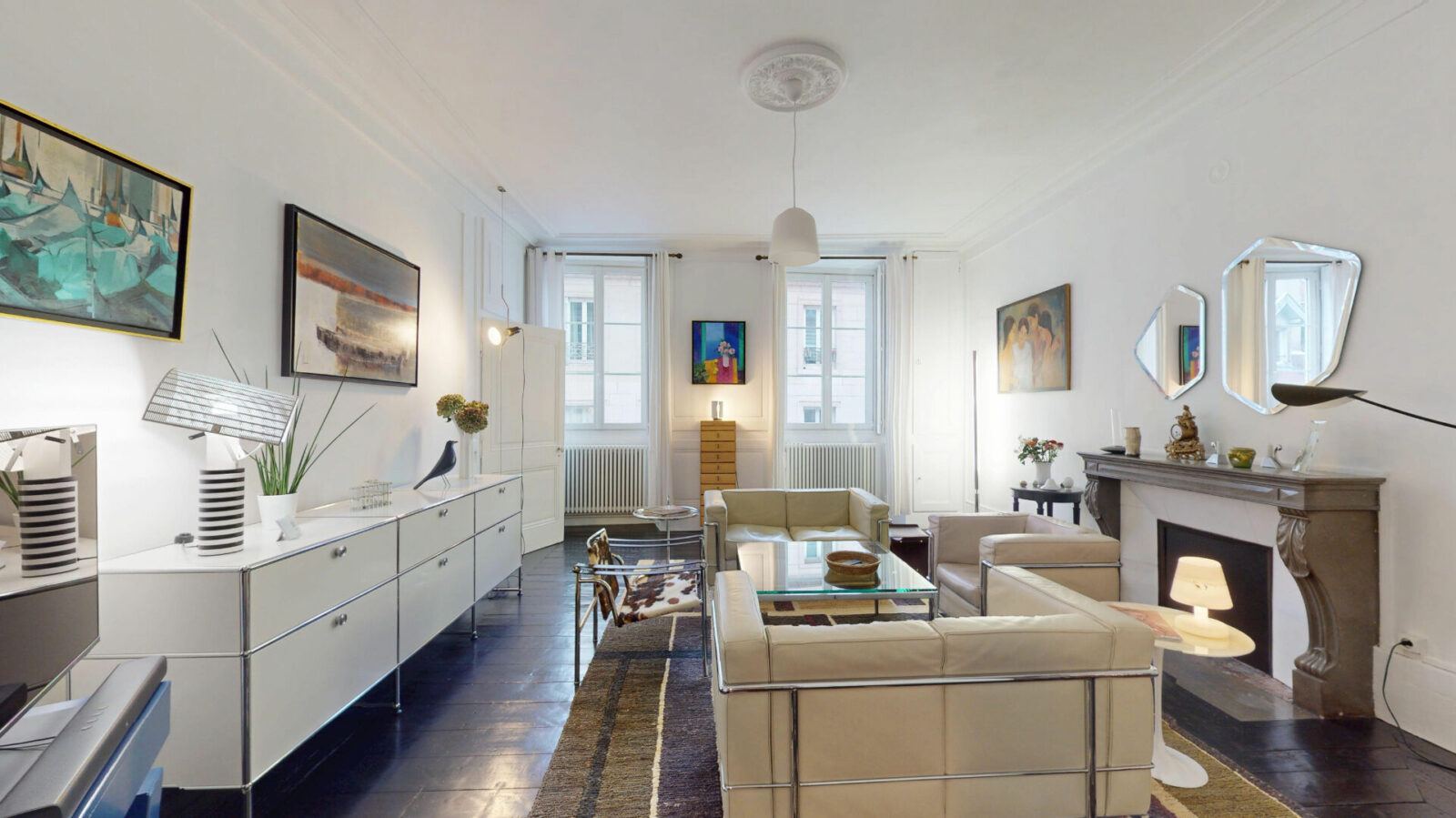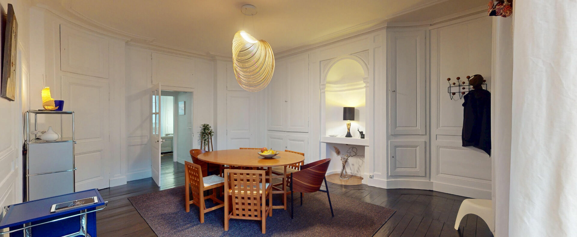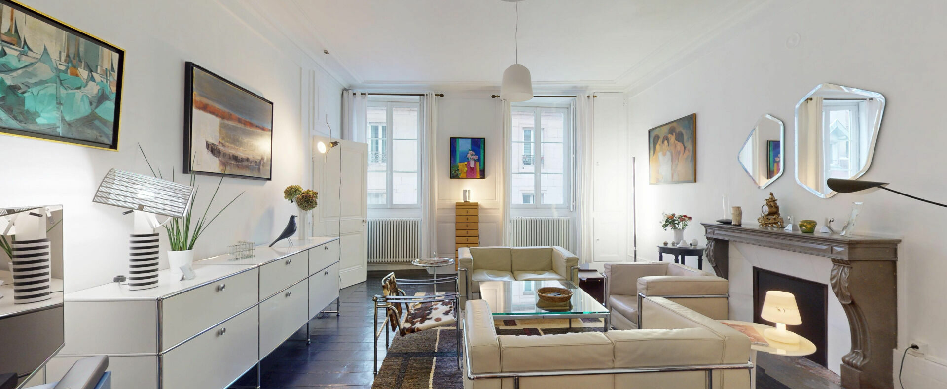 L’appartement, lumineux et en très bon état général, s’ouvre sur un vaste salon-séjour et une salle à manger traversante. Ces deux pièces d’environ 30 m² chacune offrent tout le caractère authentique de l’ancien, avec de beaux parquets, des boiseries élégantes, une alcôve et une cheminée du XVIII? siècle. A ce niveau se trouvent également une grande cuisine indépendante, une chambre spacieuse, une salle d’eau ainsi qu’un W.C. séparé.