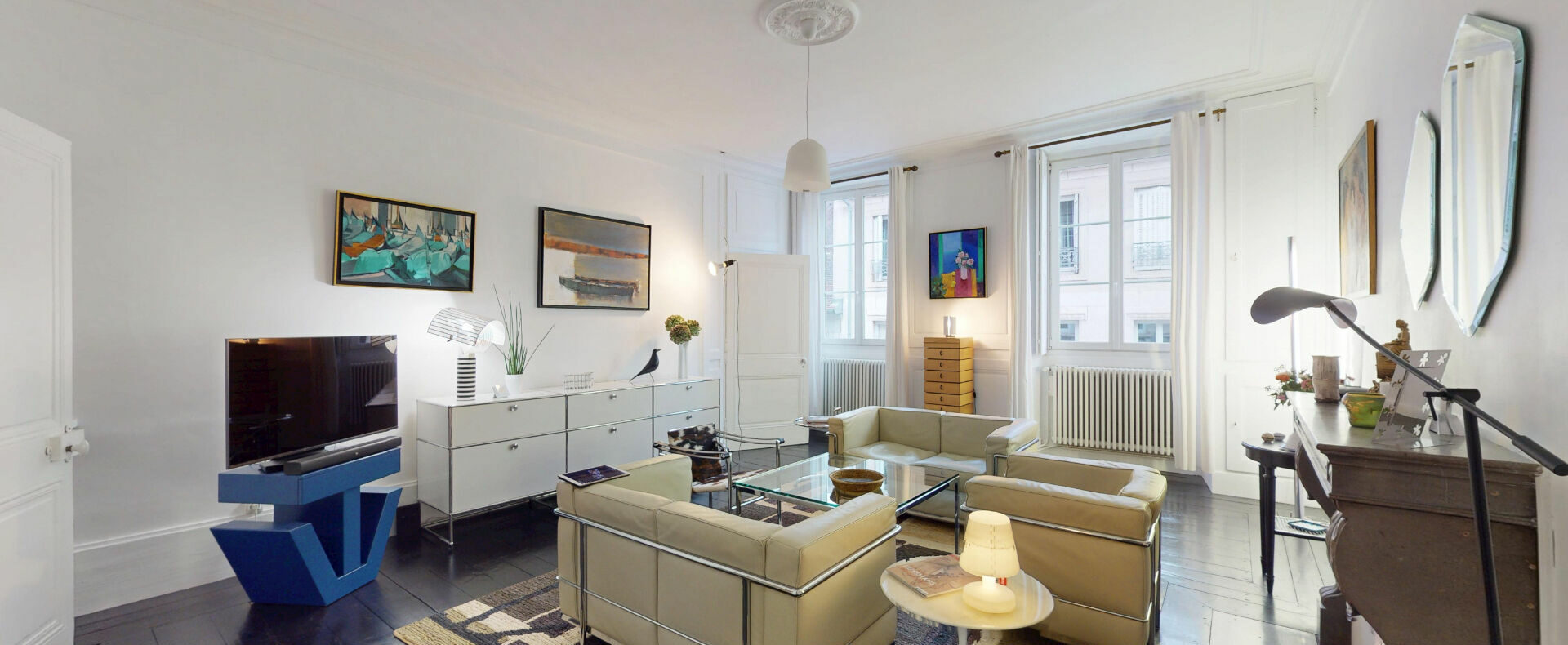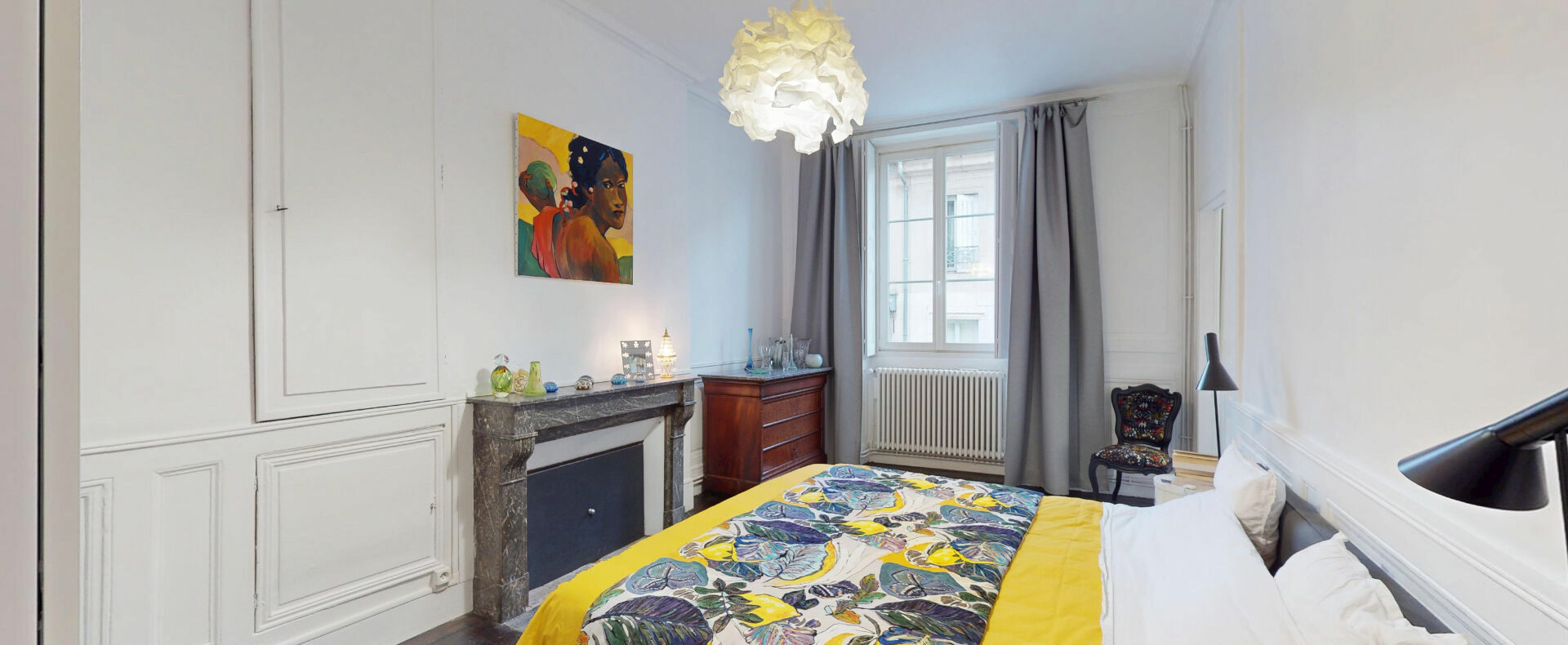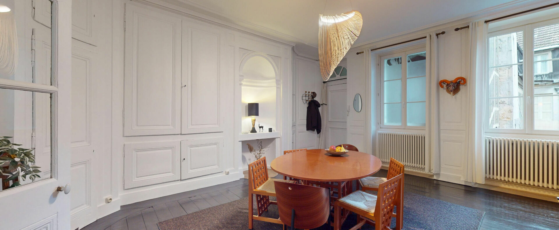 L’appartement, lumineux et en très bon état général, s’ouvre sur un vaste salon-séjour et une salle à manger traversante. Ces deux pièces d’environ 30 m² chacune offrent tout le caractère authentique de l’ancien, avec de beaux parquets, des boiseries élégantes, une alcôve et une cheminée du XVIII? siècle. A ce niveau se trouvent également une grande cuisine indépendante, une chambre spacieuse, une salle d’eau ainsi qu’un W.C. séparé.