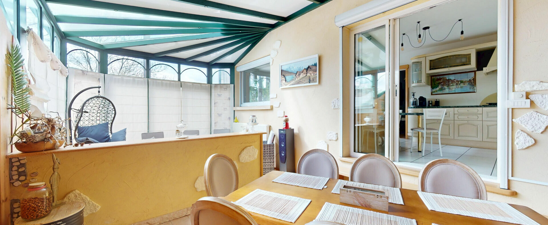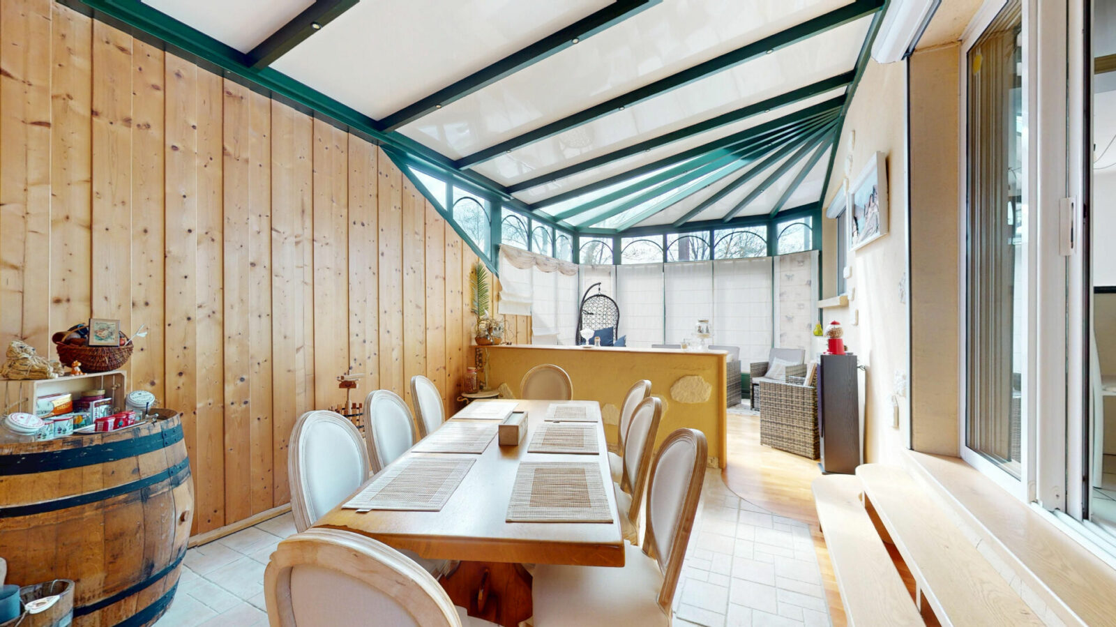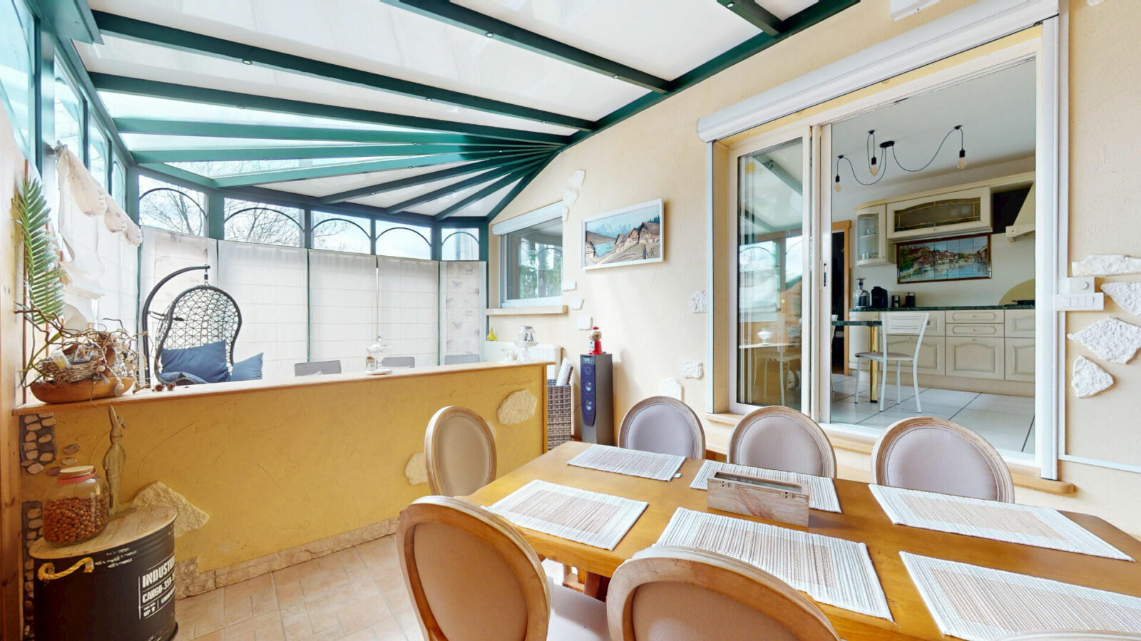 L’un des atouts de ce bien est sa grande véranda lumineuse, véritable pièce de vie supplémentaire permettant de profiter du cadre extérieur tout au long de l’année. Un balcon vient également compléter l’ensemble, offrant une vue dégagée sur un environnement verdoyant et apaisant.