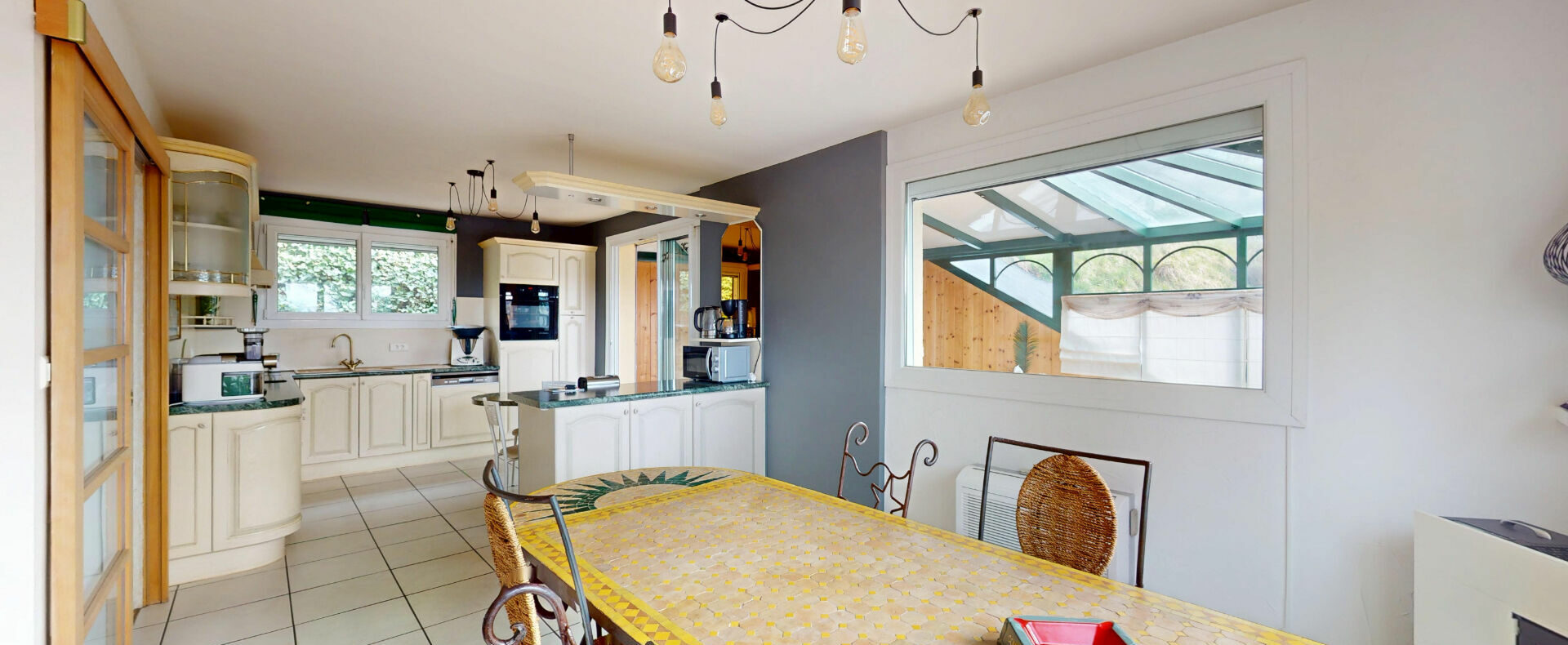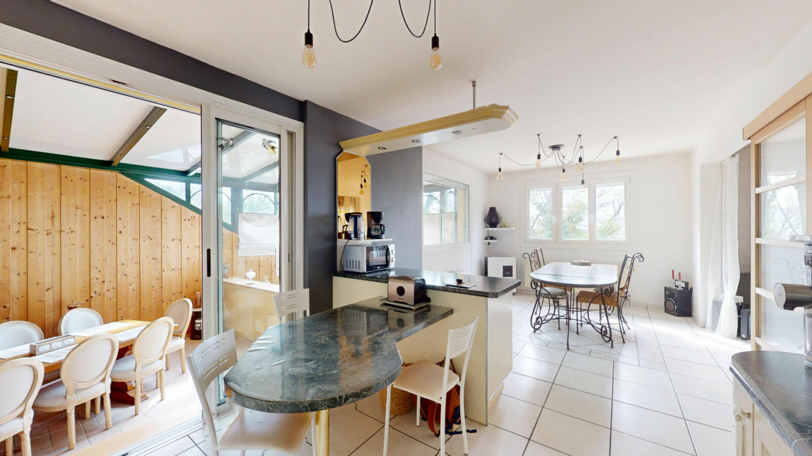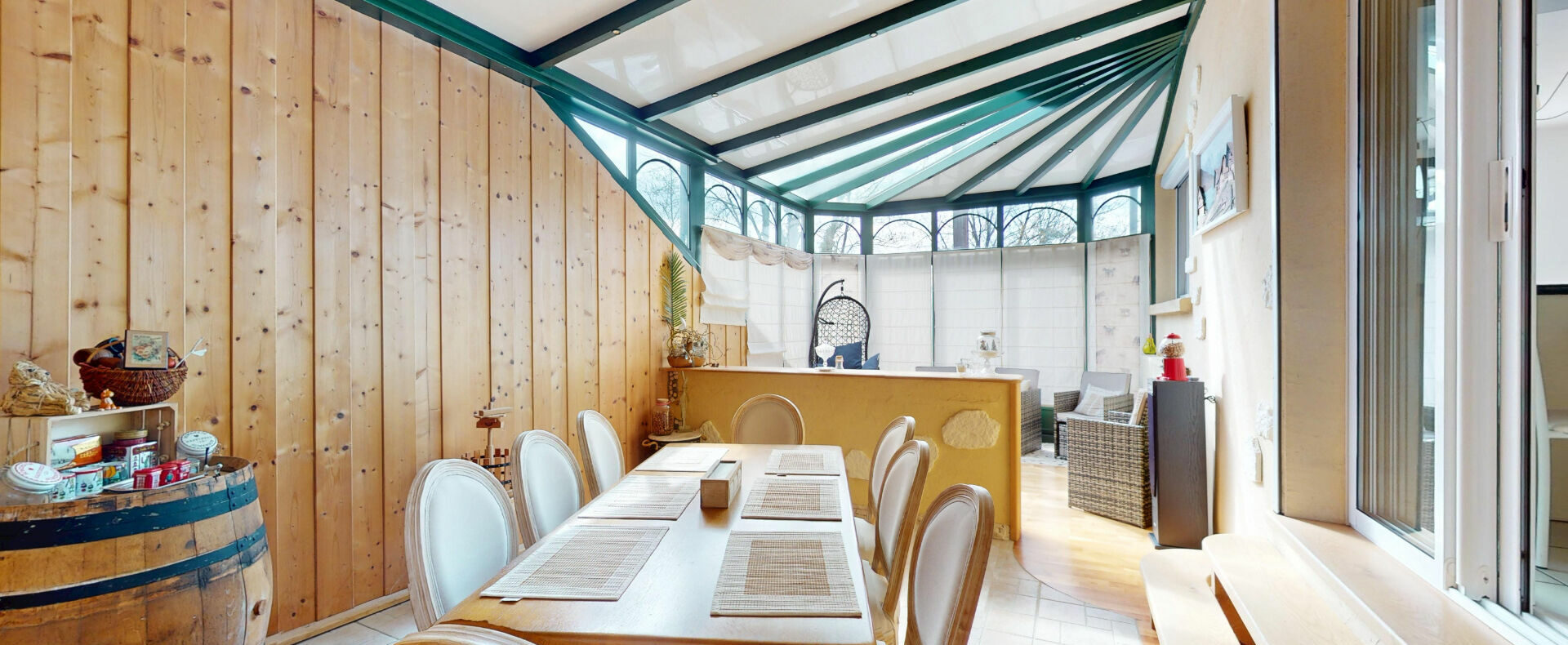 L’un des atouts de ce bien est sa grande véranda lumineuse, véritable pièce de vie supplémentaire permettant de profiter du cadre extérieur tout au long de l’année. Un balcon vient également compléter l’ensemble, offrant une vue dégagée sur un environnement verdoyant et apaisant.